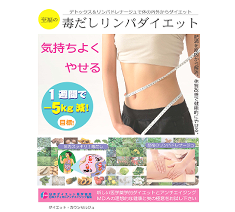 5kg、10kg、20kgと体重減の成功者が続出している大人気の毒出しリンパダイエットコースです。MDA日本ダイエット医学協会が長年のダイエットノウハウで作り上げた、大人気のミラクルダイエットプログラムは、体の中から外から自然にダイエットし、気持ち良く痩せることができると大評判です。体に溜った毒素を排出し、痩せやすい健康的な体質に導きます。1週間で5kg痩せるためのノウハウを学びます。ダイエット後もリバウンドしない「痩せやすい体質づくり」のための痩身ラファセルフリンパコースを習得し、ご自宅で至福のダイエットを実践できます。